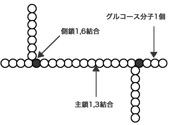 ベータ1,3/1,6グルカンは、基本構造が同じであっても、酵母や菌の種類によって、側鎖1,6結合の長さや間隔などが違い、型が異なります。免疫細胞に反応するためには、側鎖の長さや間隔が最も重要になります。